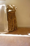 2020A 'minimalist' work; a fabric of all kinds of pieces of natural material that connects with the living world natural material that connects with the world of my great-grandfather Johann: sheep's wool, flax, hemp and cotton fibers and threads; neatly with rough chunks of limestone and granite or pebbles of flint, quartz and jasper rounded by river water. The fragments form a balance with the yoke, trunk and base of pine wood. This is my symbol for our shared creative heritage.